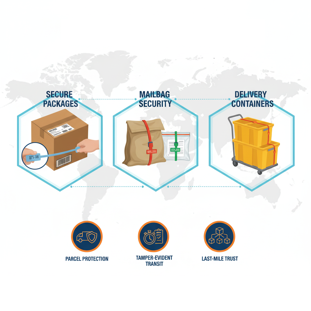 Secure sealing solutions for courier bags, parcels, and mail pouches that prevent unauthorized access during delivery.